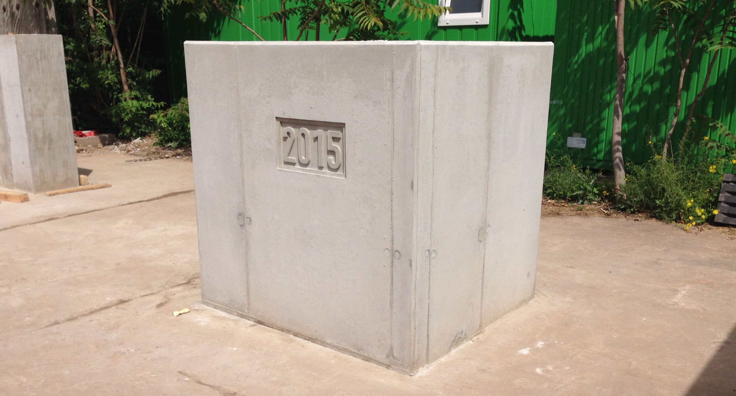A prototype for the bridgeheads of the Island Bridges towards the Harbour Island in Offenbach was set up. The opening of the bridges will be in 2015, as one can easily see.