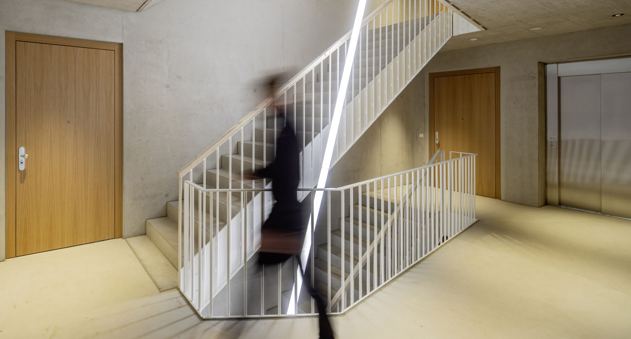 The residential buildings, located next to a tree-covered grove, are staggered in height and arranged around a shared courtyard. They offer a total of 48 rental apartments and are connected underground via a shared parking garage. The residential concept is complemented by a spacious common room, a guest apartment, a fitness room, and areas for urban gardening.